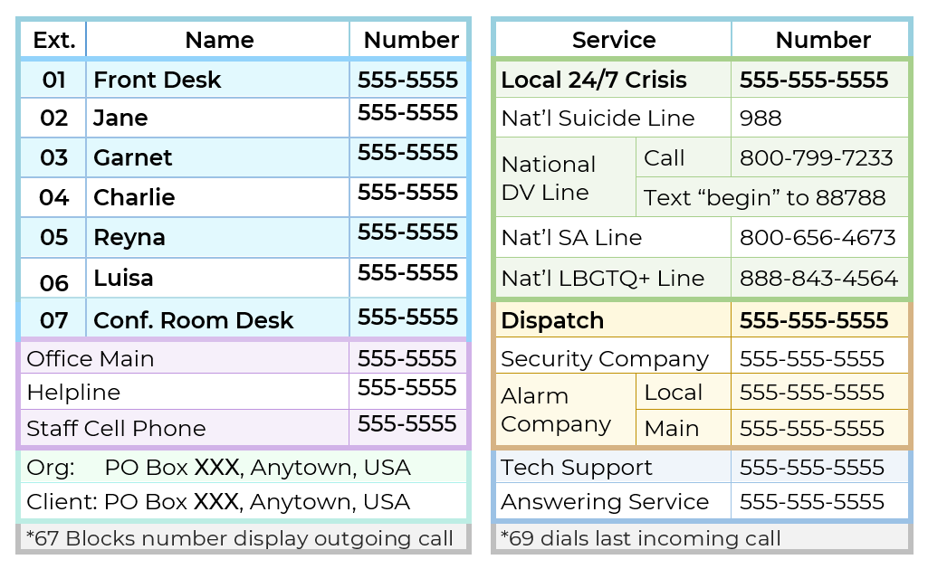 I meticulously re-formatted the table to highlight key information, included community partner details, verified and updated all phone numbers, and added our most frequently used services. As all staff members are expected to answer the phone, and as any phone call might be a client in crisis, it is imperative that everyone have quick access to phone numbers.